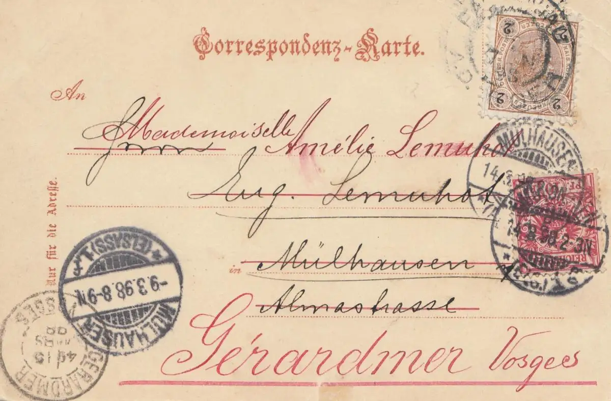 Autriche: 1898: AK Karlovy Vary vers la France