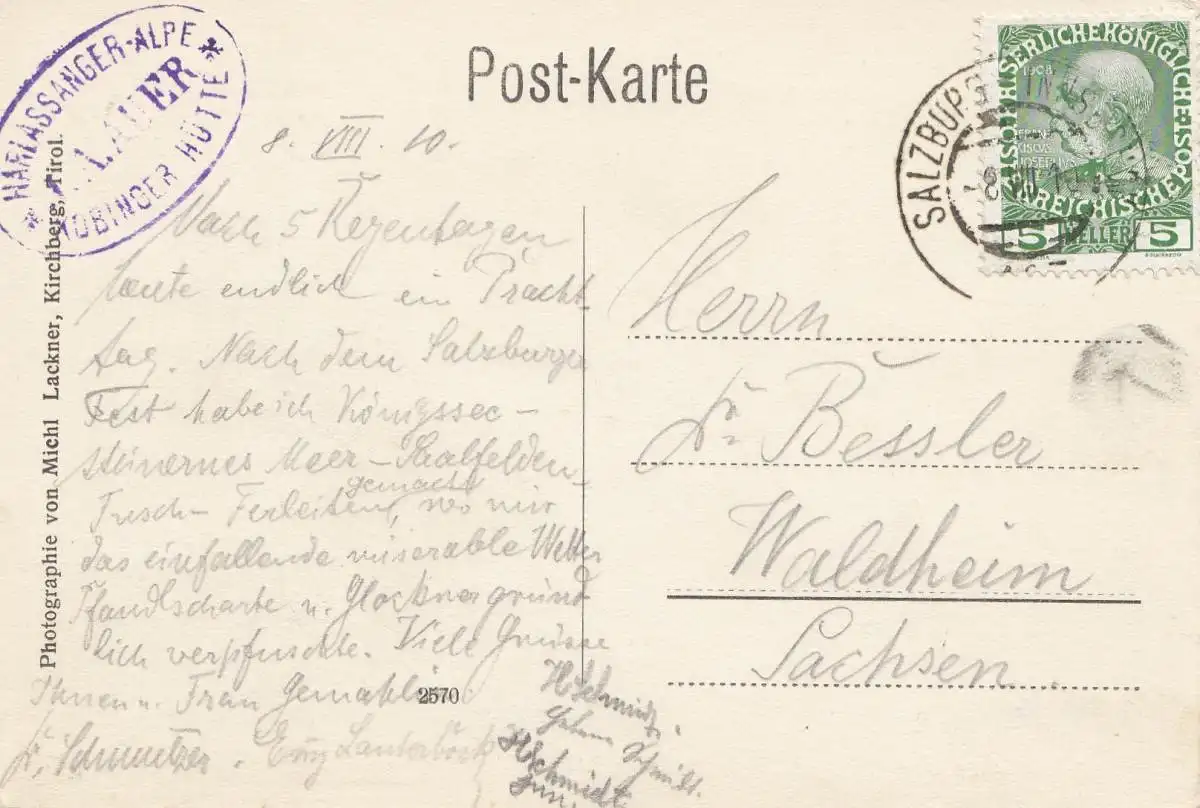 Autriche: 1910: AK Alpe Harlassanger vers Waldheim/Sa