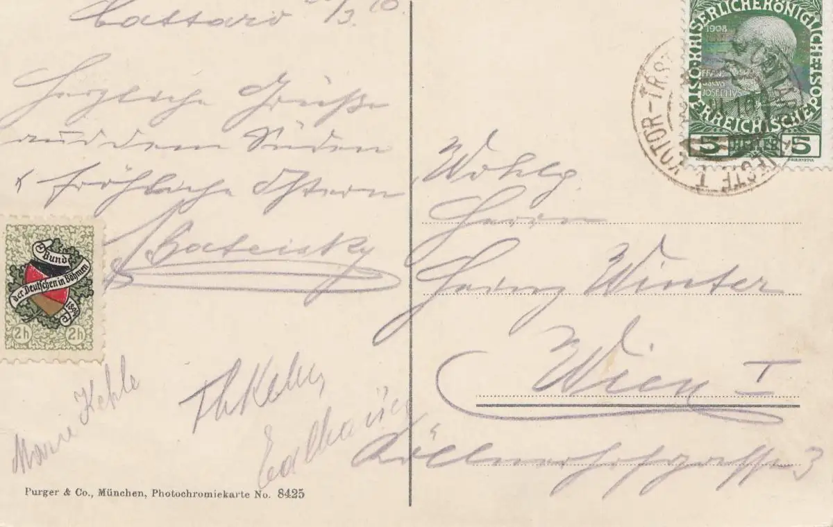 Autriche: 1910: AK Trieste vers Vienne: Vignette: Bund der Deutschen in Böhmen