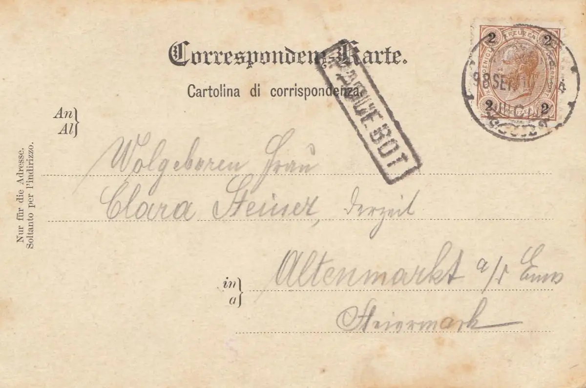 Autriche: 1910: Carte de Zara après Altenmarkt - Paquebot