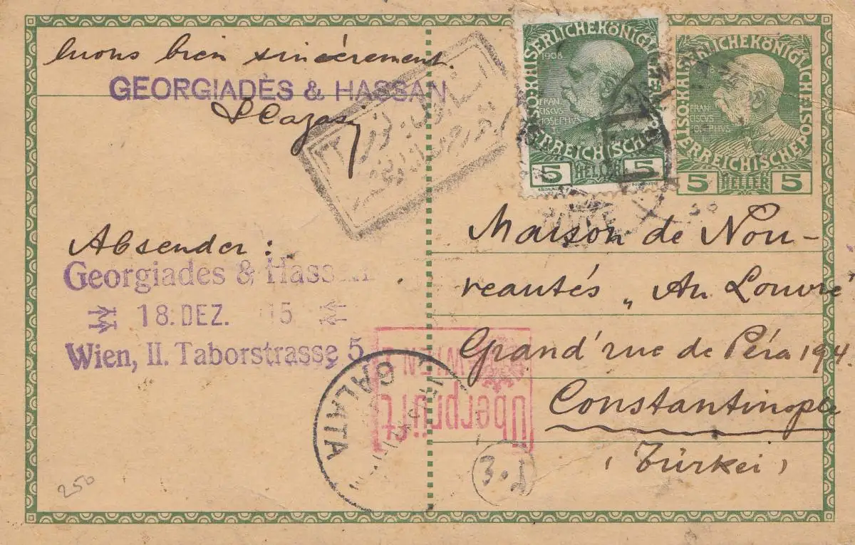Autriche: 1915: entier Vienne après Constantinople, examiné