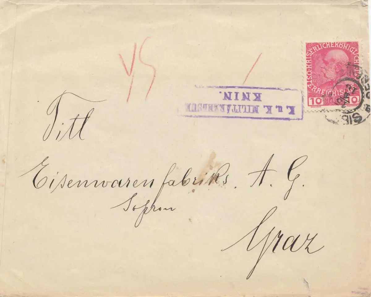 Autriche: 1916: Kuk censure Knin apr. Graz: Publicité Eternit