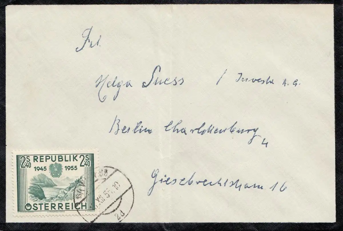 Autriche: 1955: Lettre de deuil Vienne à Berlin