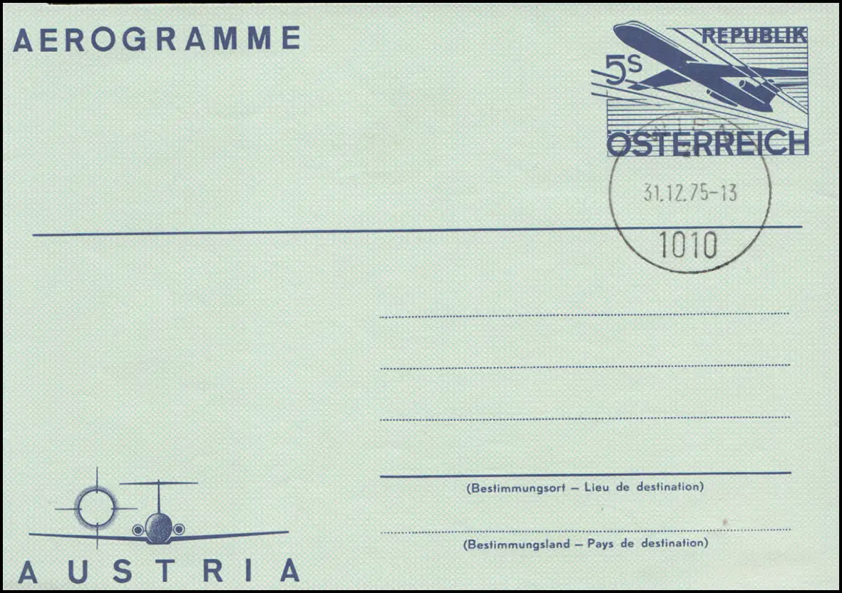 Autriche Aerogrammes LF 16 avec cachet de faveur 1010 WIENNE 31.12.1975
