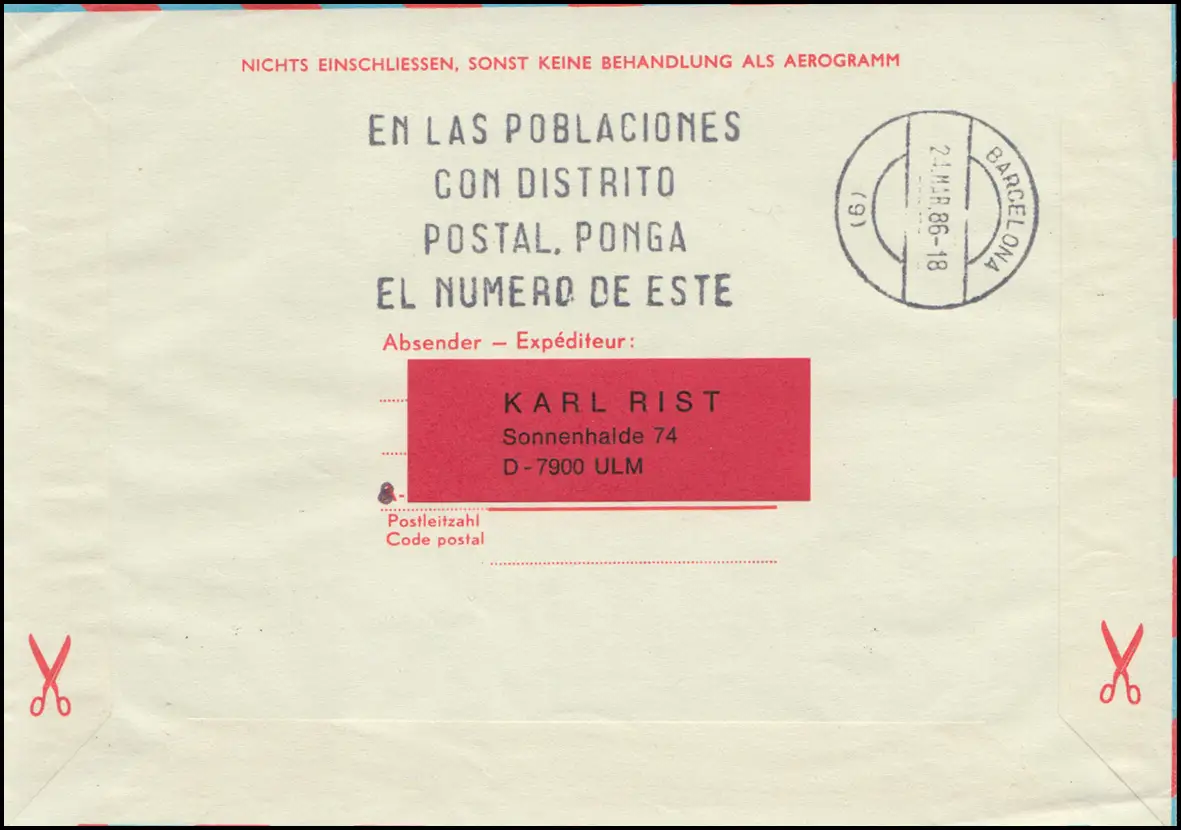 Lettre postale aérienne Vienne Stephanskirche, Tampon d'arrivée BARCELONA 24.3.1986 N° de catalogue: LF20 Examen: original Référence produit: 00000000033857
