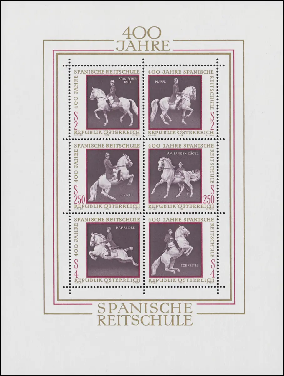 Autriche Bloc 2 400 ans Ecole d'Equitation Espagnole, **