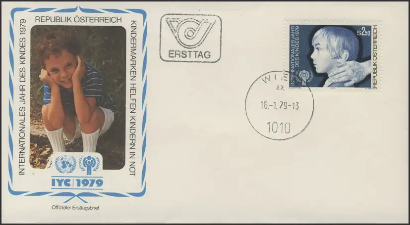Autriche: enfant avec main protectrice, 1 valeur sur le FDC de bijoux