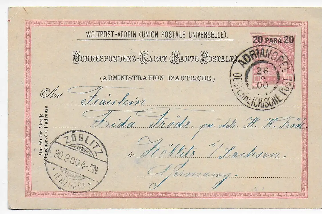 Autriche - Levante: Adrianopel vers Zöblitz 1900