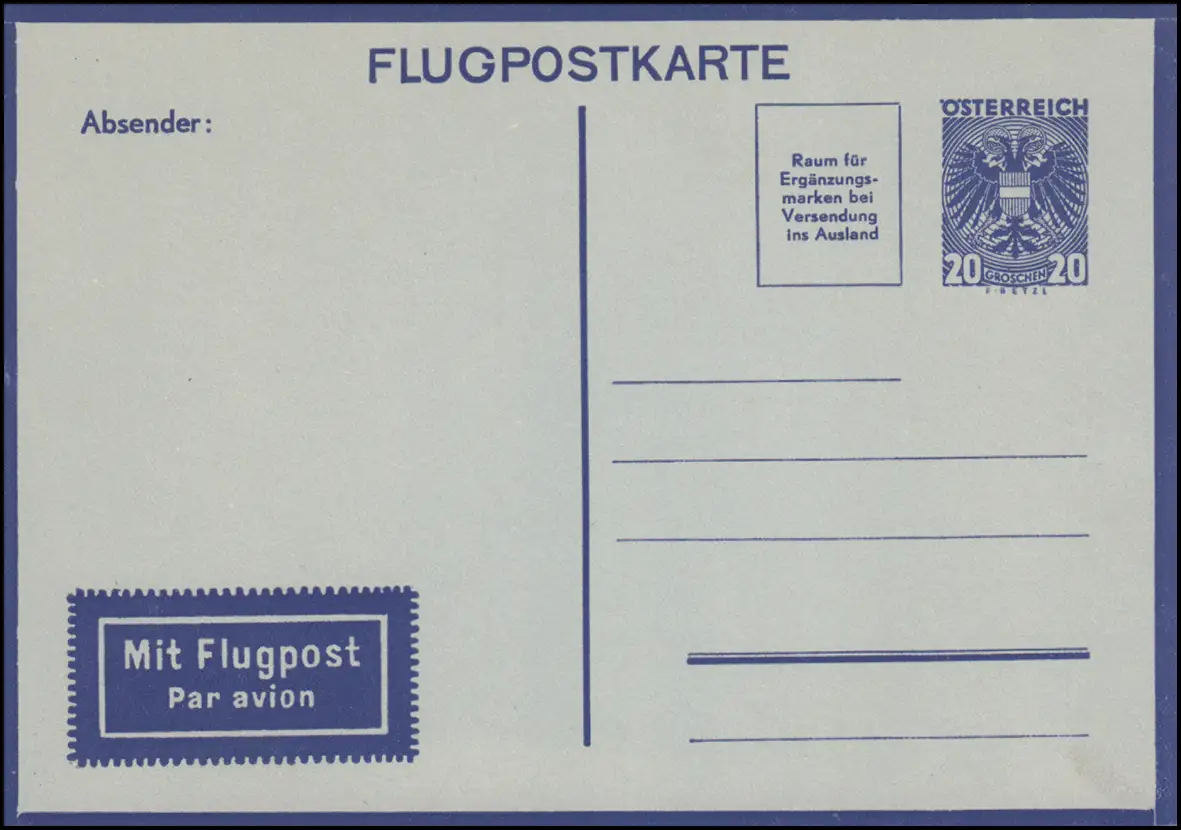 Autriche Carte postale aérienne LP 4 Armoiries 20 G., non utilisé, petit manque d'angle