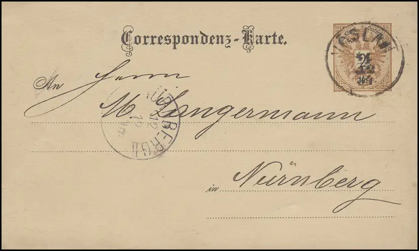 Autriche Carte postale P 43 Kammgarnfabrik VÖSLAU 11.12.84 n. Nuremberg 12.12.1984