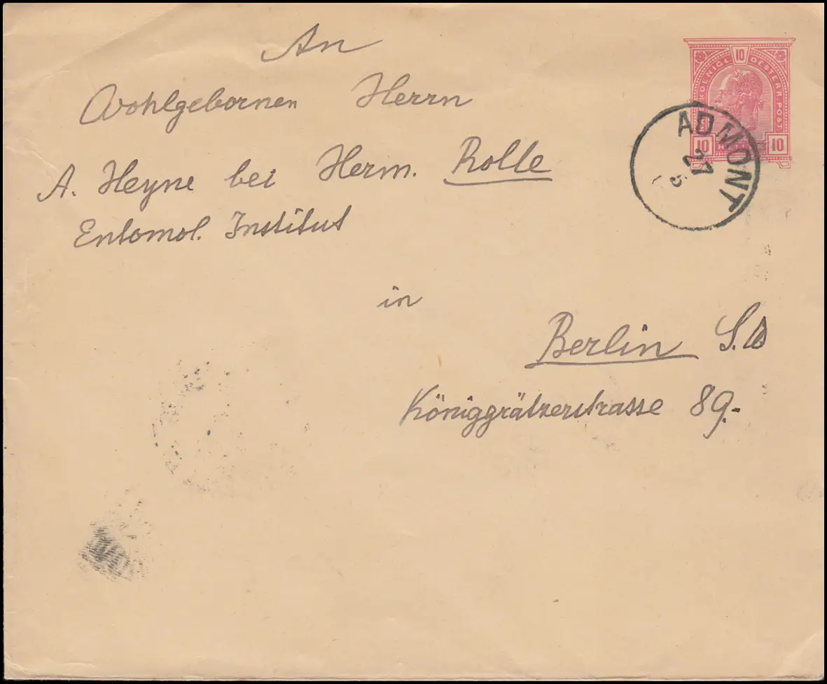 Autriche Couverture 69 Empereur Franz Joseph 10 Heller, ADMONT 27.5.194 n. BERLIN