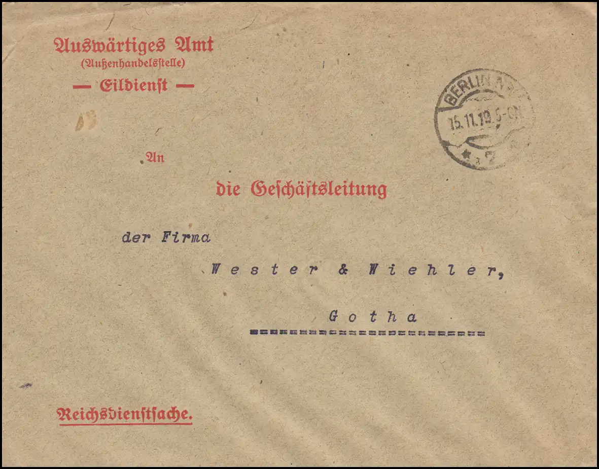 Office du commerce extérieur BERLIN 15.11.19 vers Gotha