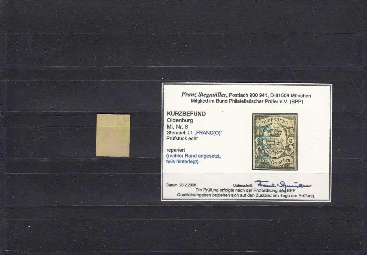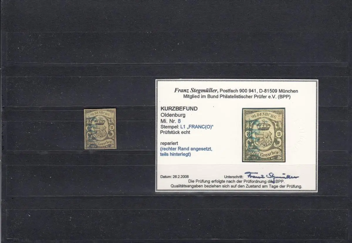 Oldenburg: MiN° 8, cacheté Franco, BPP résultat