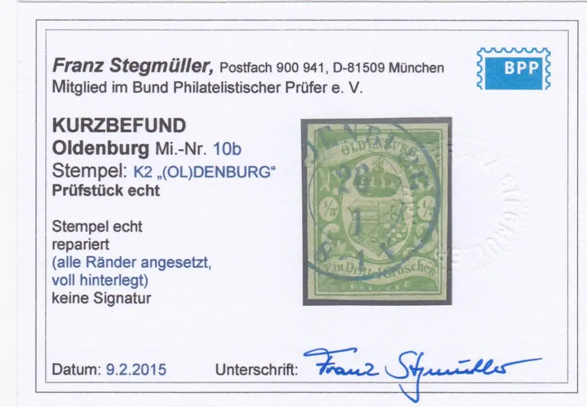 Oldenburg: Michel no 10b, cacheté, résultat BPP