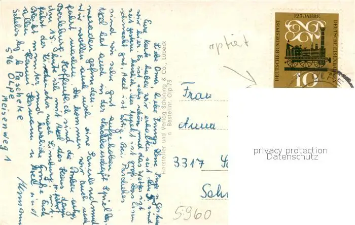 Olpe_Meschede Pallottinerkloster Am Hexenturm Baeckerfachschule Kurkoelner Platz St Franziskus Schule Listertalsperre An der Steinkuhle Stadtpark Olpe Meschede postalisch gelaufen 1962 Erhaltung siehe scans [WerneD78] WernPID7
