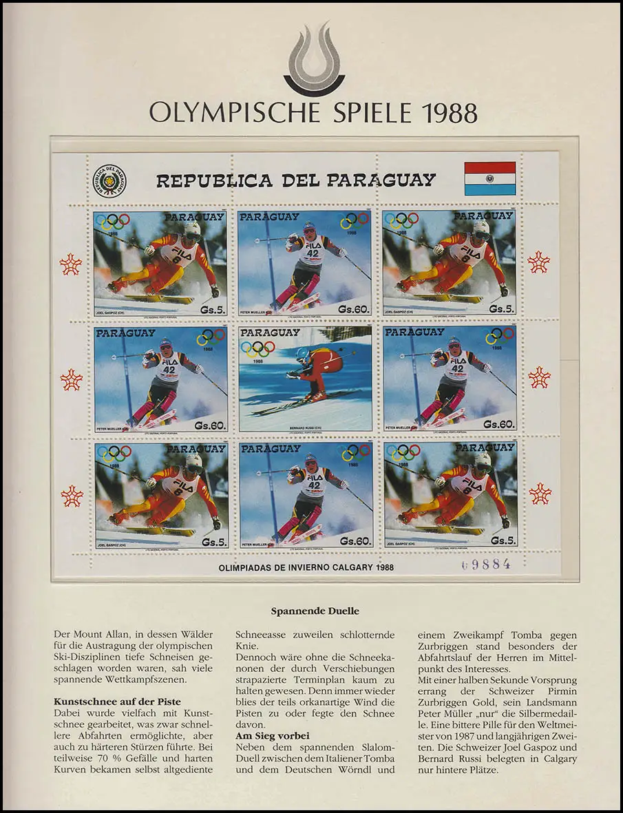 Olympia 1988 Calgary - Paraguay, petit départ de l'arc, Slalom, frais de port **