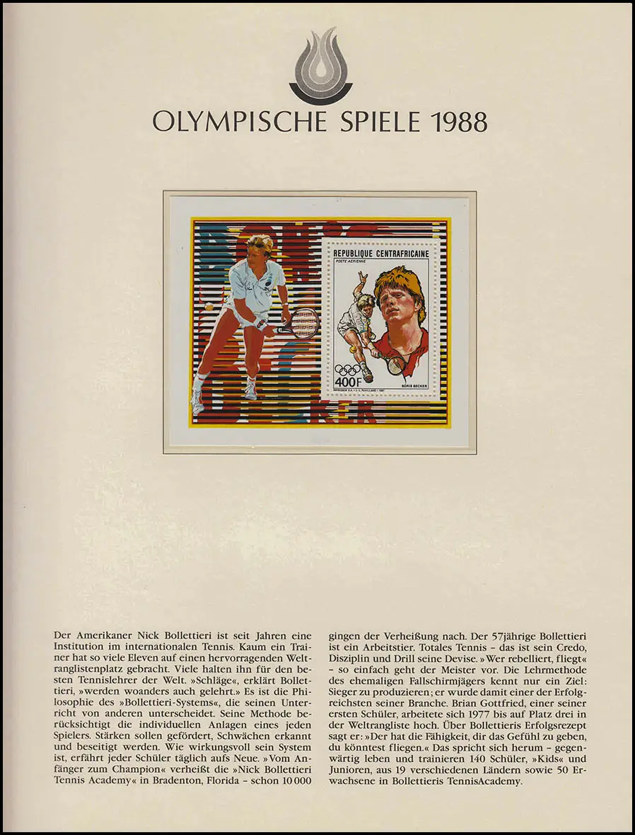 Olympia 1988 Séoul - Afrique centrale, ensemble + bloc, Steffi Comte, Boris Becker