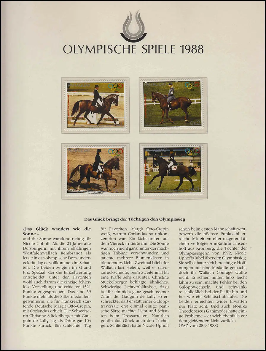 Olympia 1988 Séoul - Paraguay, 1 set d'équitation, dressing, frais de port **
