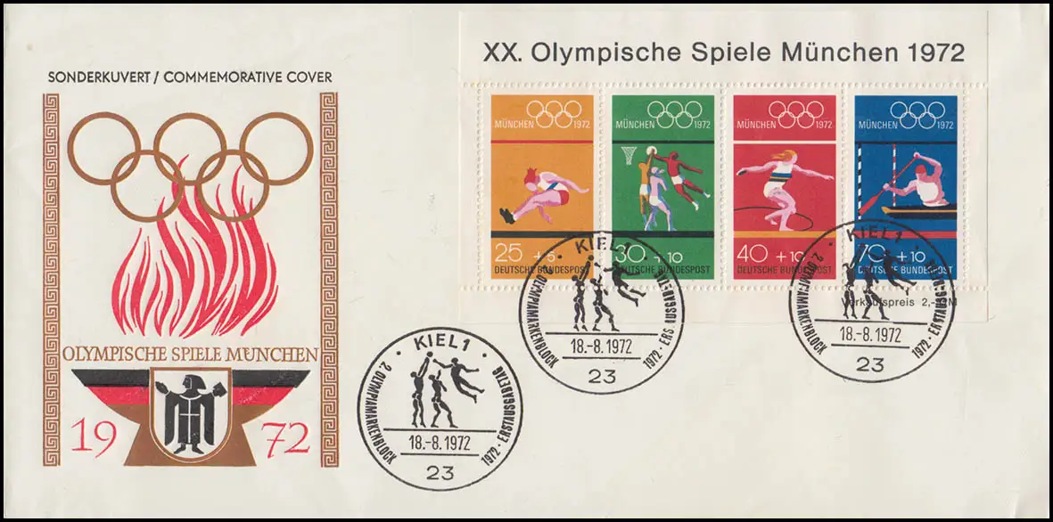 Bloc olympique 8 sur le FDC de bijoux ESSt KIEL Volleyball 18.8.1972