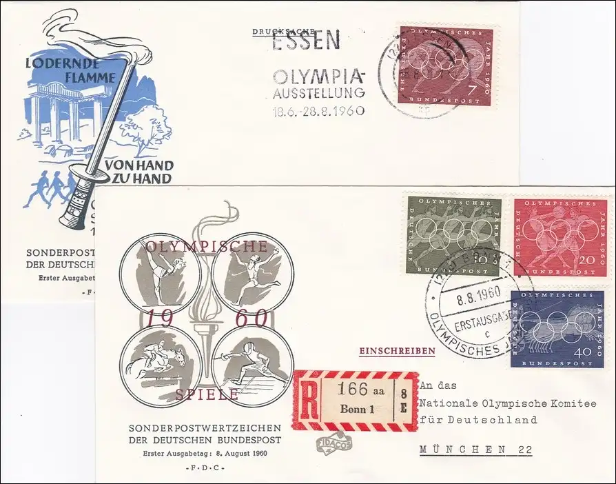 Jeux olympiques 1960 - Lettre recommandé Première édition, 2 lettres, 1x couru, FDC