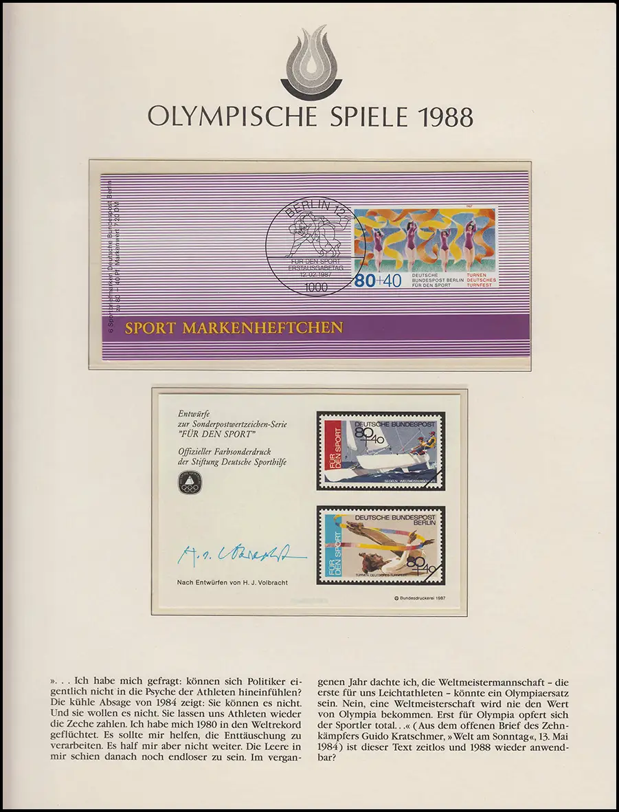 Jeux olympiques 1988 Séoul - Allemagne 1 bloc **, MH Berlin 12.2,87 + 1 FDC