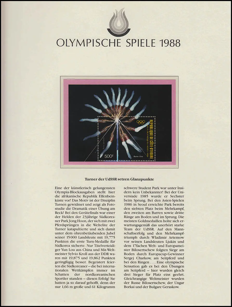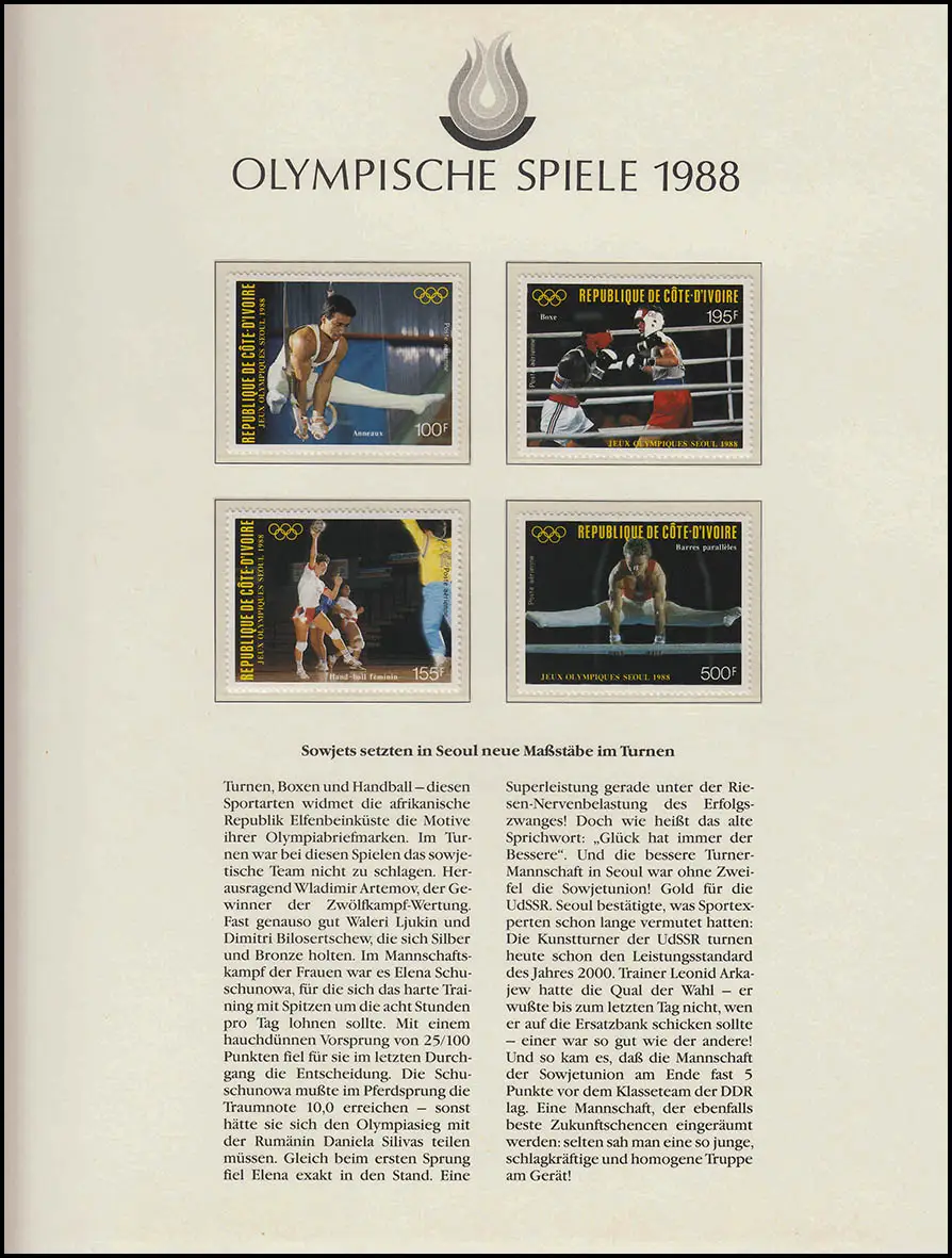 Jeux olympiques 1988 Séoul - Côte d'Ivoire, ensemble + bloc, anneaux, gymnases **