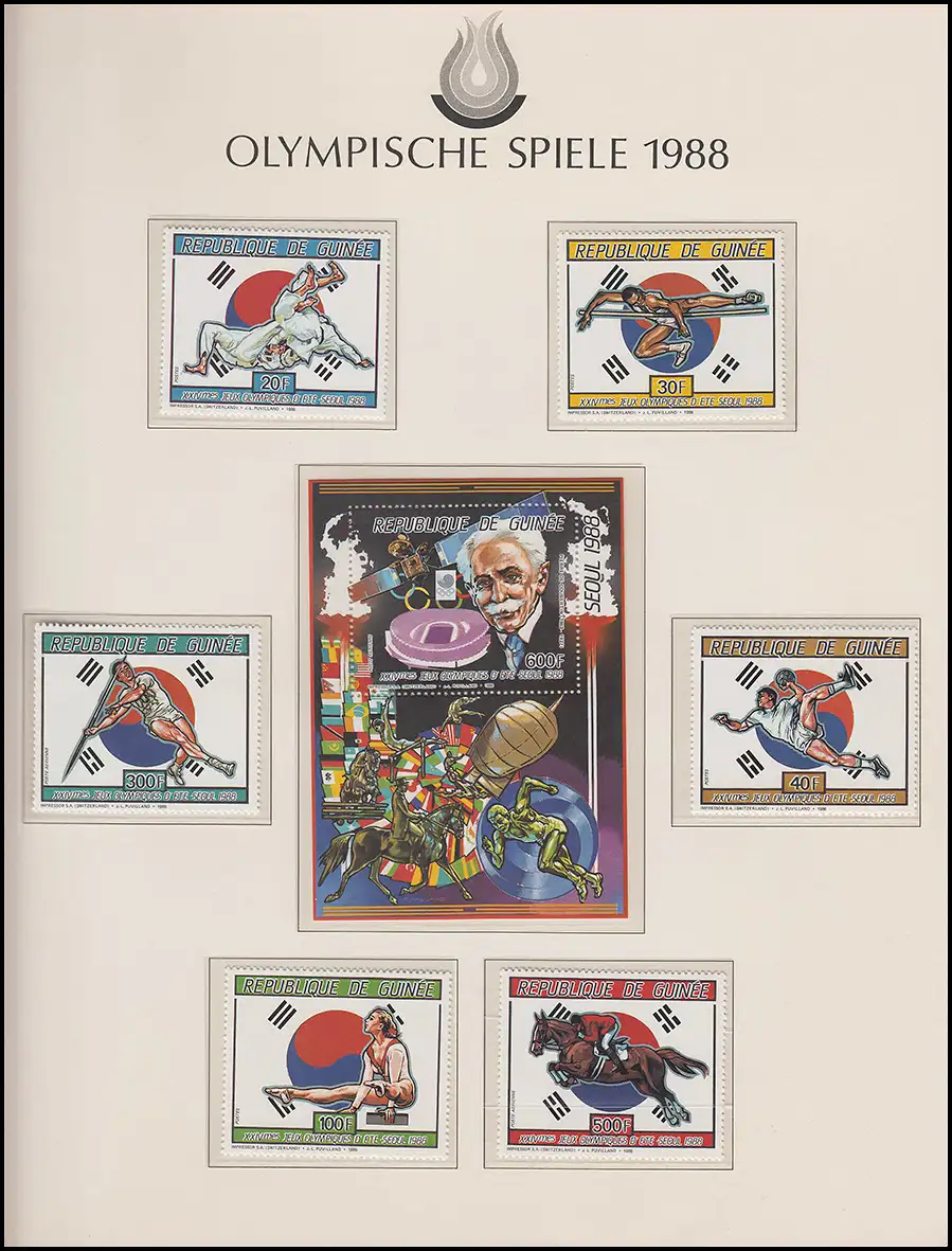 Jeux olympiques 1988 Séoul - Guinée 1 phrase, 1 bloc, sports frais **