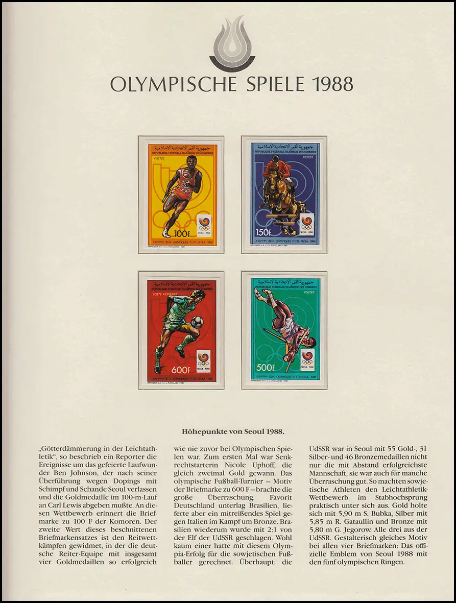 Jeux olympiques 1988 Séoul - Comores, ensemble, football, saut en hauteur, équitation **