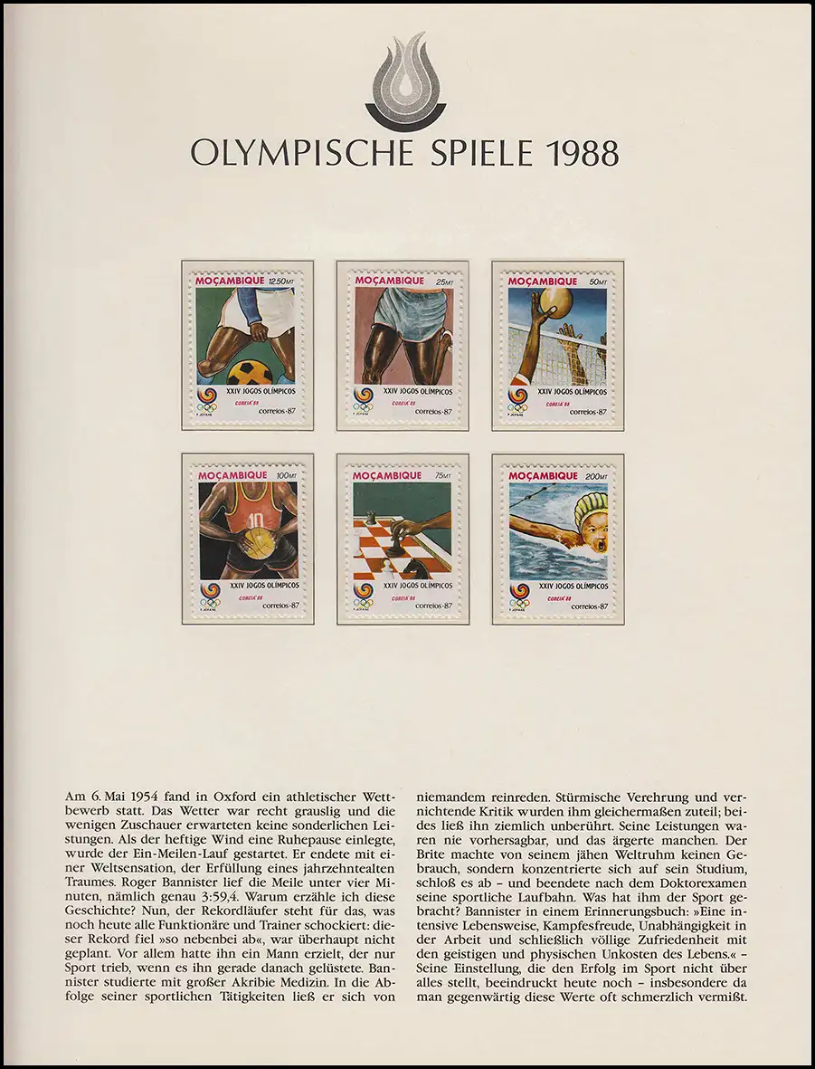 Jeux olympiques 1988 Séoul - Mozambique 1 ensemble de marques, sports, frais de port **