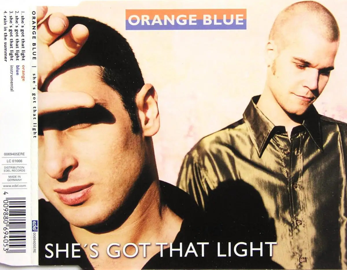 CD Single Orange Blue - She's Got That Light, État CD M- Hülle M; Fabriqué en Germany 2000 Edel 0069405 UCE, Tracks [Orange] 3:37, [Blue] 337 [Instr] 0337 Rain In The Summer 3:58