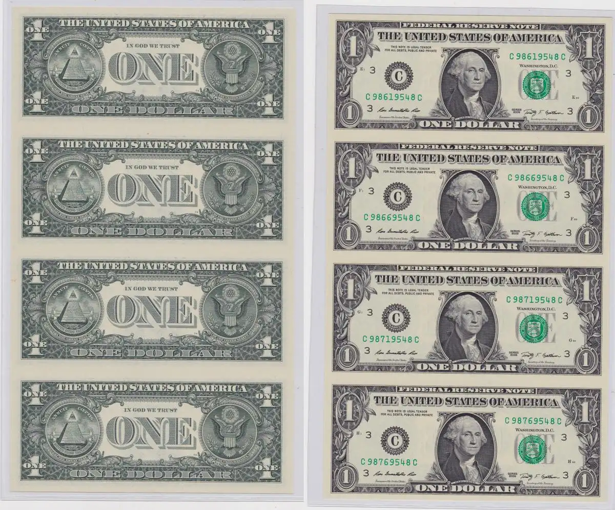 Original USA Viererbogen der 1 Dollar Banknote Serie 2009 UNC (165680)