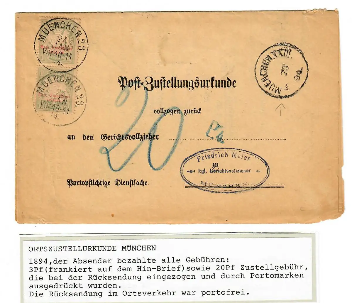 L'ordre de livraison est le suivant: Munich, 1894, retour par timbres Porto gratuit