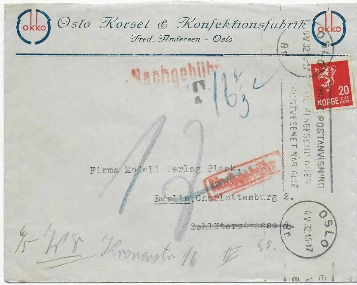 Oslo 1932 à Berlin avec supplément, dos avec image
