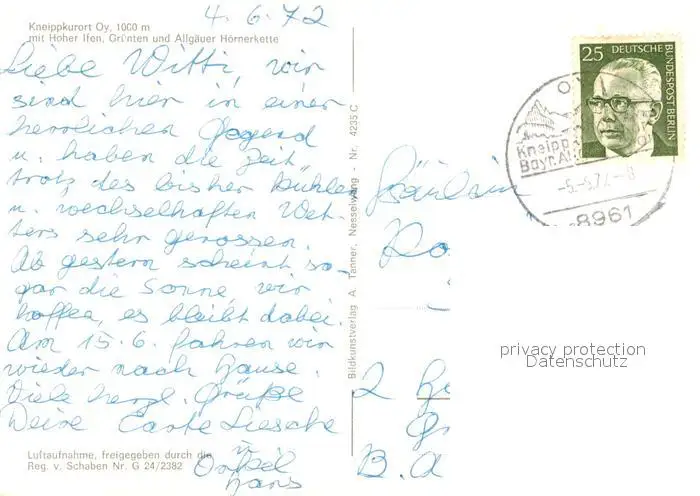 Oy-Mittelberg Fliegeraufnahme mit Hoher Ifen Gruenten und Allgaeuer Hoernerkette Oy-Mittelberg postalisch gelaufen 1972 Erhaltung siehe scans [WerneD78] WernPID7