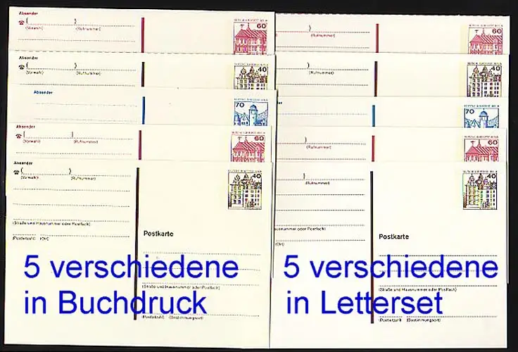 P 121-125I+II BuS - Ensemble de 10 pièces: impression de livre et letterset **