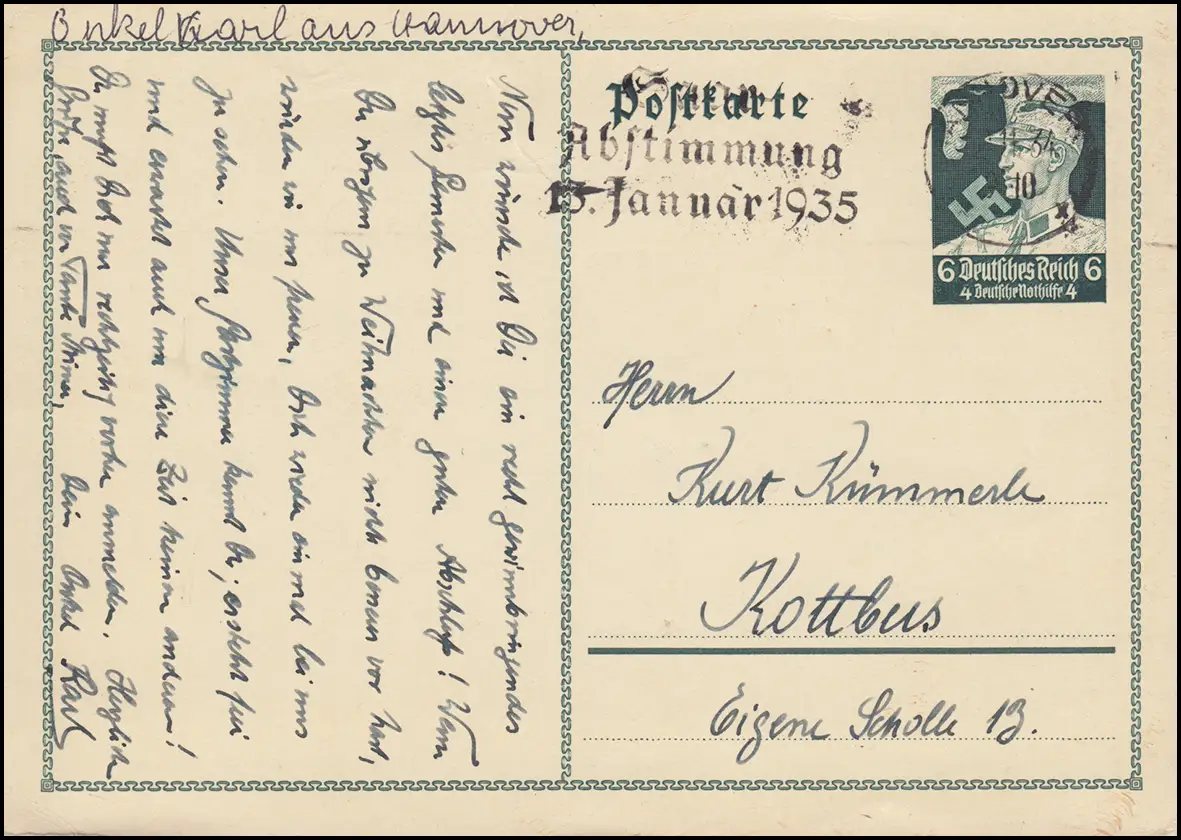P 255 Aide d'urgence SA-Man, publicité-O Saar vote HANNOVER 12.11.1934