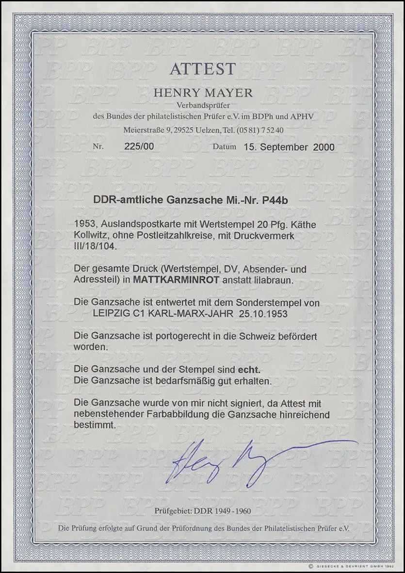 'Test complet réel' - Rarité! Numéro de catalogue: P44b Examen: BPP-Atest Numéro d'article: 00000000013566