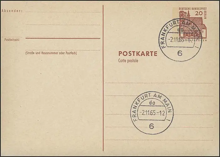 P 65 - Constructions 20 Pf brun rouge avec VS-O Francfort/Main