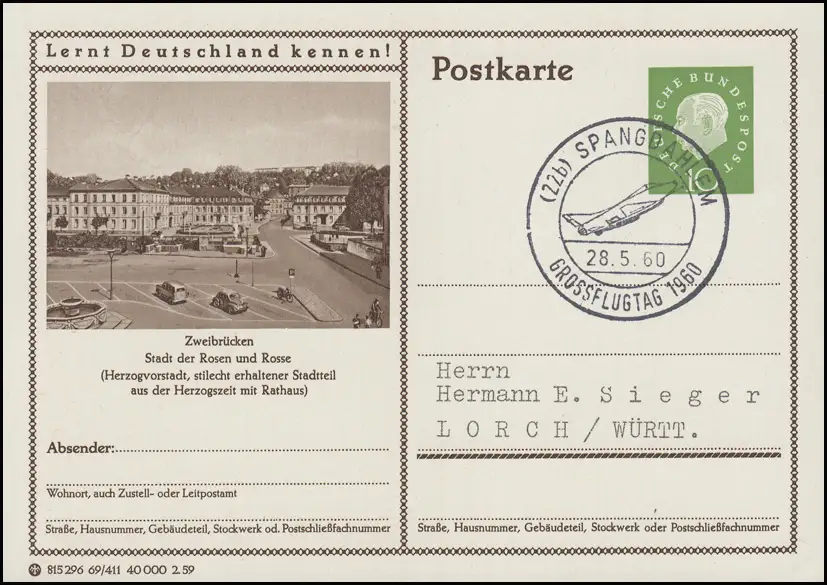 P041-69/411 Zweibrücken, Herzogsvorstadt - SSt SPANGDALEM Grand jour de vol 28.5.60