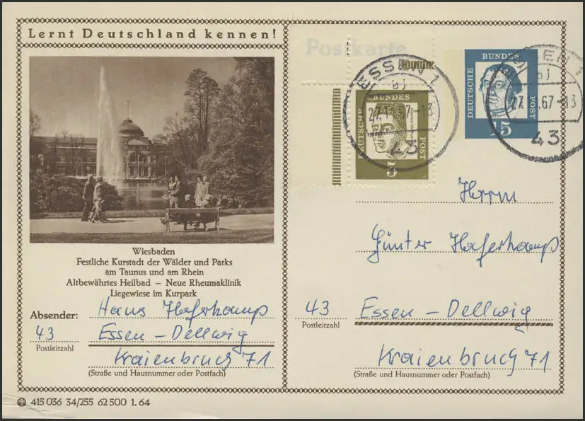 P081-34/255 Wiesbaden Kurpark + coin 347y de MHB 7, repas 27.11.67