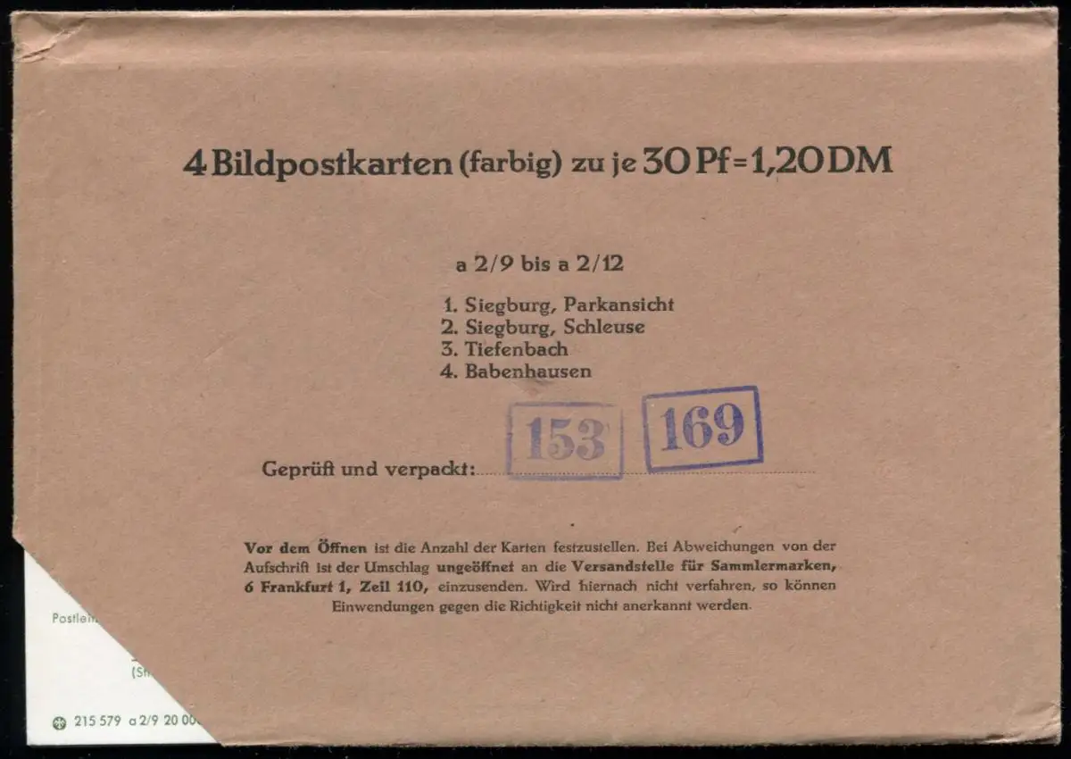 P109 Série 215579 a 2/9 à a 2/12, 4 cartes/10.72
