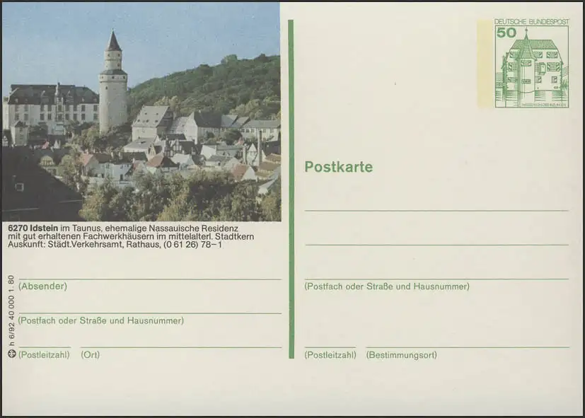 P130-h6/092 6270 Idstein, vue de la ville avec château **