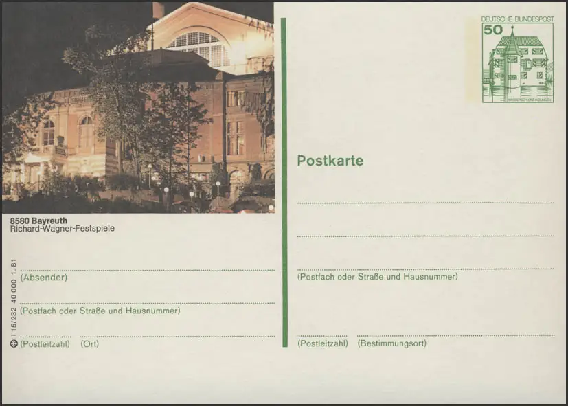 P134-i15/232 8580 Bayreuth, Richard Wagner Festspielhaus la nuit **