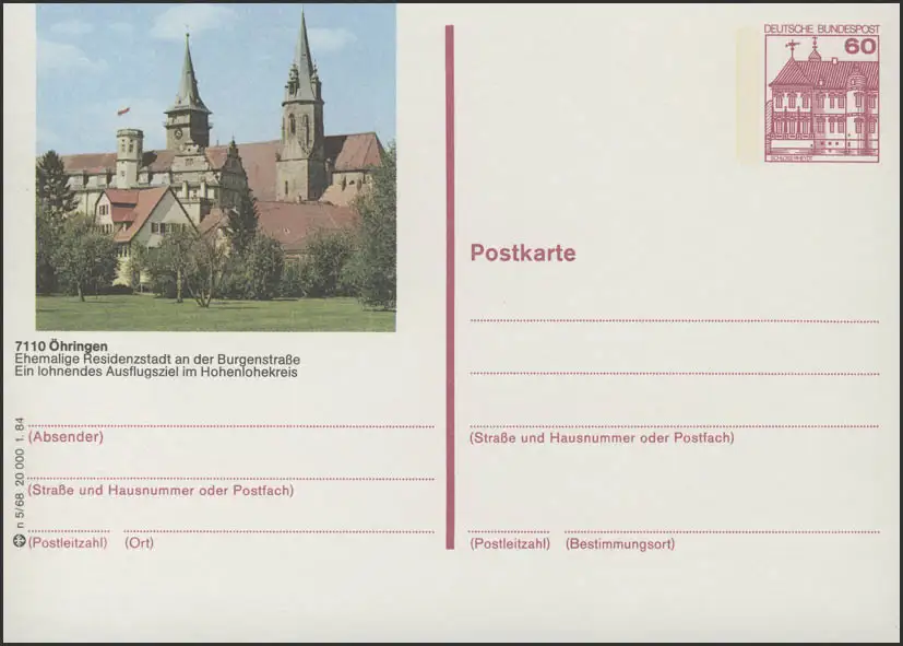 P138-n5/068 7110 Öhringen, vue sur la ville avec église **