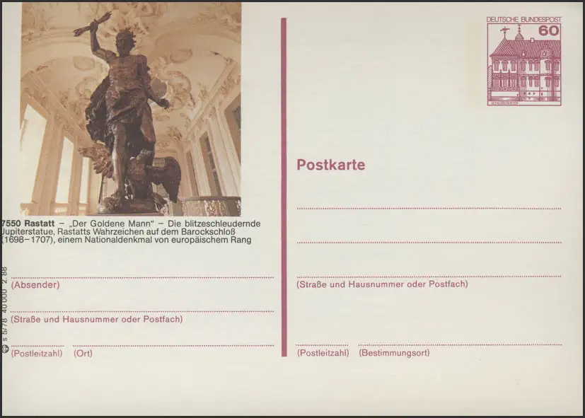 P138-s5/078 7550 Rastatt Jupiterstattue Goldener Mann **