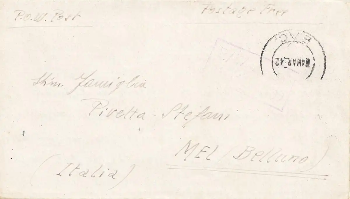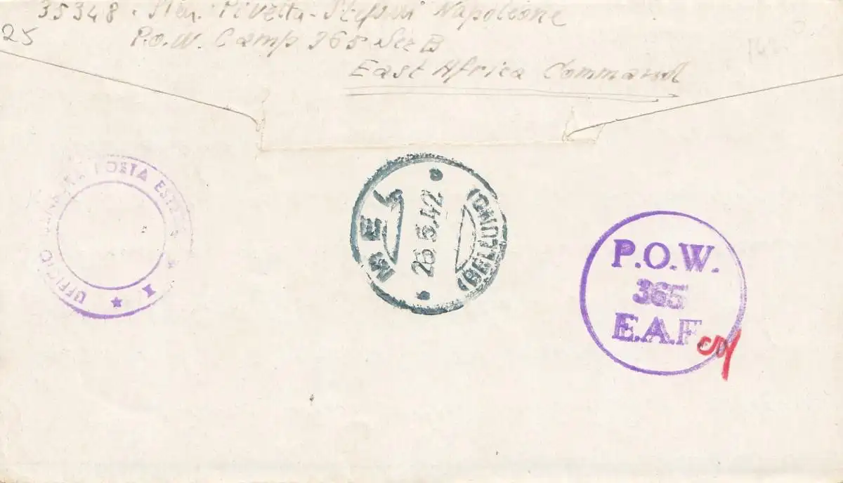 POW - Kgf: 1942 East Africa Commandement to Italie avec texte