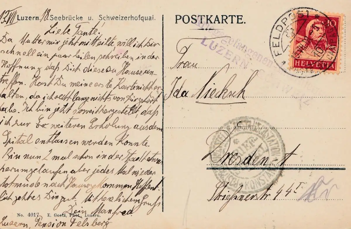 POW - Kgf: AK de Lucerne, après l'internement de Dresde 1918