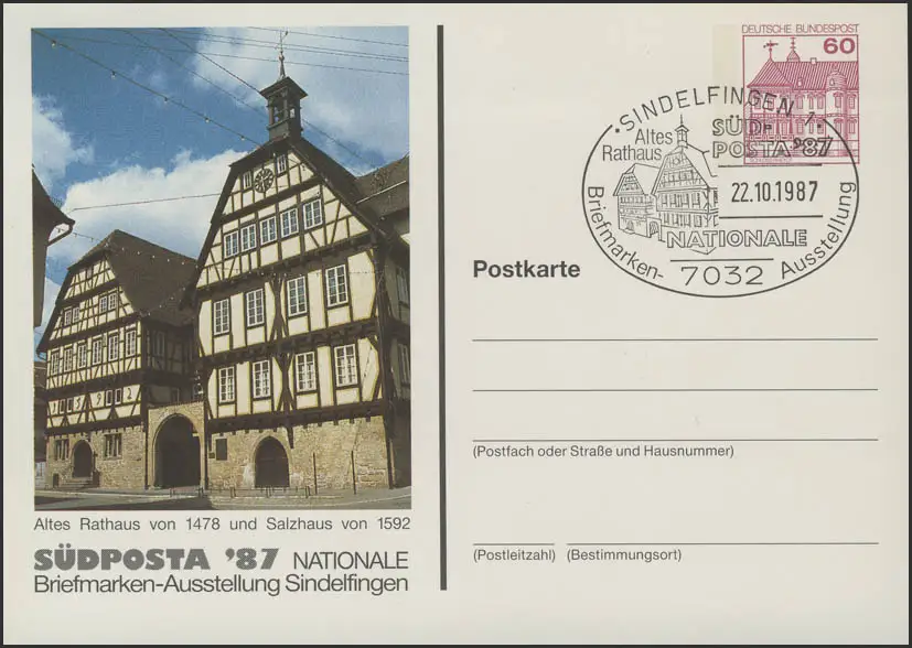 PP 106/262 SUDPOSTA'87 Sindelfingen Hôtel de ville et Salzhaus, SSt 22.10.1987