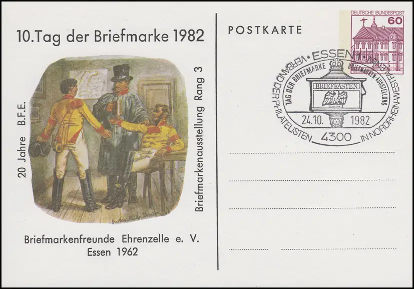 PP 106 BuS Jour du timbre 1982 & Postillone, SSt Essen Boîte aux lettres 24.10.82