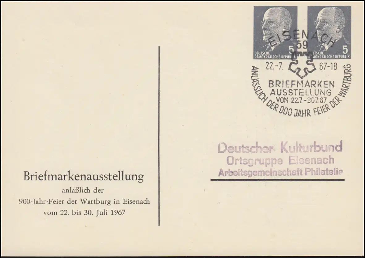 PP 11/13 Ulbricht 5+5 Pf Exposition Eisenach, SSt EISENACH 22.7.1967